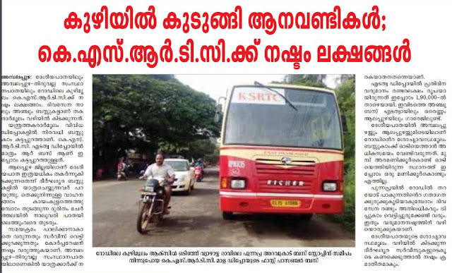 ദേശീയപാതയിലേയും അമ്പലപുഴ-തിരുവല്ല സംസ്ഥാനപാതയിലേയും കുഴികൾ കാരണം നിരവധി ബസ്സുകൾ ബ്രേക്ക് ഡൗൺ ആകാറുണ്ട് . കൂടാതെ റോഡിലെ ബ്ലോക്കിൽ കുടുങ്ങി ബസ്സുകള് വൈകിയോടുന്നതും പതിവാണ്. കൃത്യ സമയം പാലിക്കാൻ ബുദ്ധിമുട്ടുന്നതോടെ പലപ്പോഴും അവസാന ട്രിപ്പുകൾ കട്ട് ചെയ്യുക കൂടി ചെയ്യമ്പോൾ ബസ്സ് കാത്ത് നിൽക്കുന്ന യാത്രക്കാർ വലയുകയാണ് .